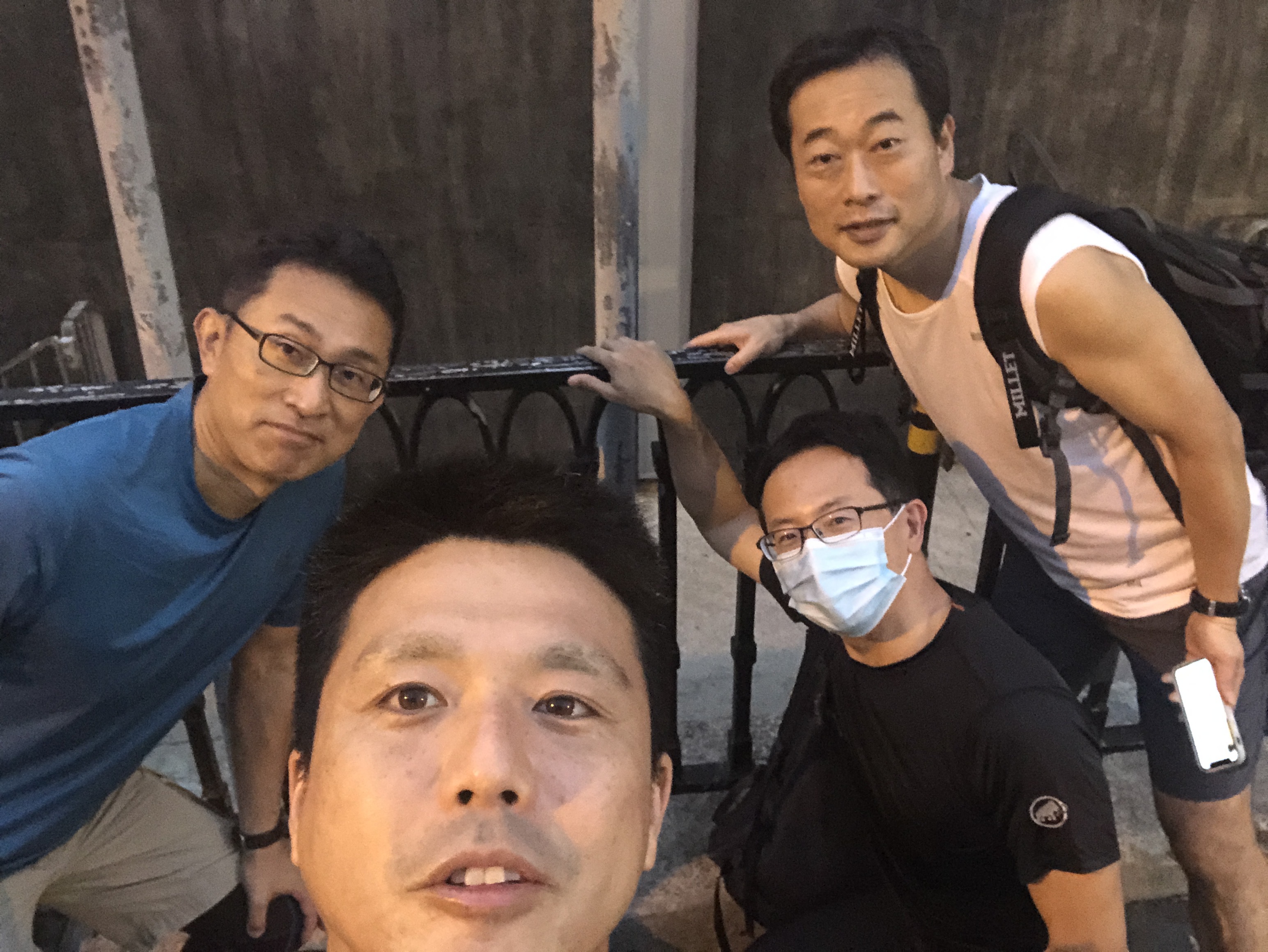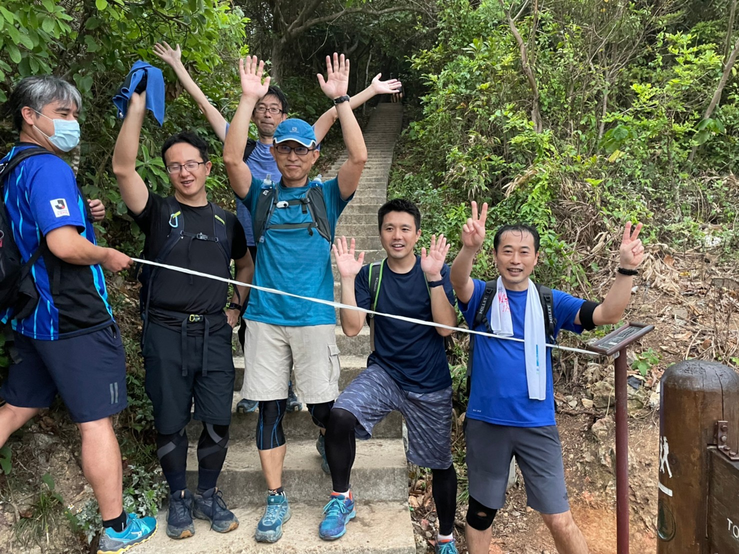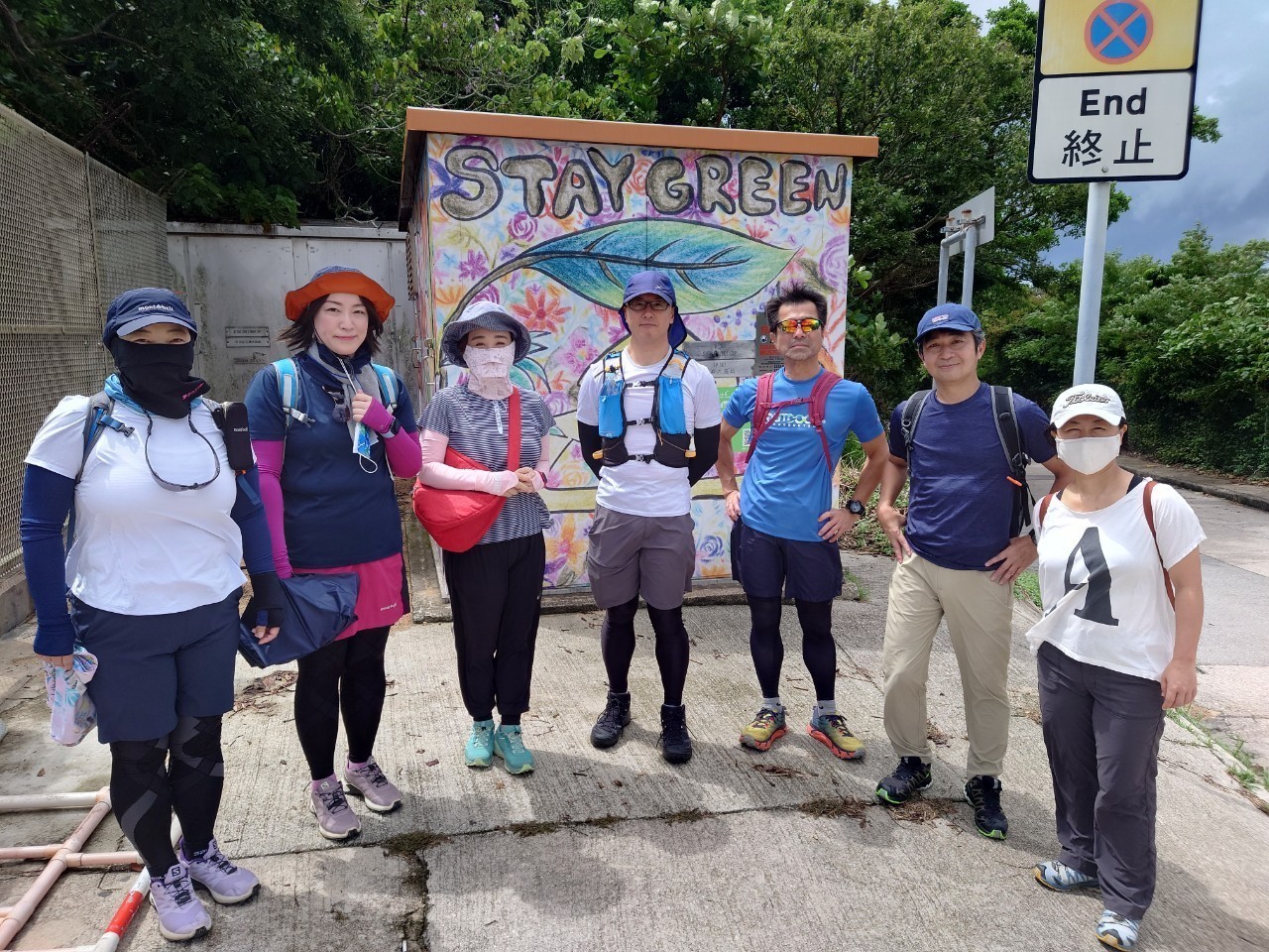 湾仔站から徒歩5分程で登山口へ。近くにお住まいの名取さん、登り口で待ち合わせ。上り口で集合写真