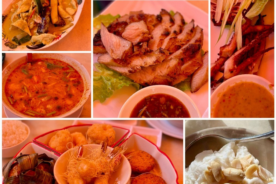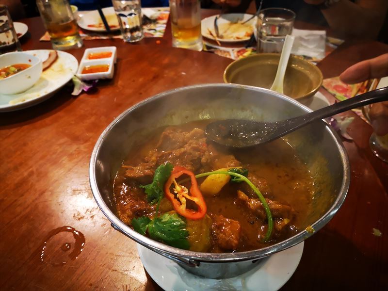 私が山海径に参加し始めた頃によく打ち上げで連れて行ってもらった懐かしい店です。店名にミャンマーとありますがほとんどがタイ料理で、ミャンマー料理は緬甸牛腩煲と緬甸薄餅のみ。ミャンマー料理の特徴は油とスパイスを多用するそうで、牛バラ煮込みは正にそんな感じ、薄餅はインド料理でもよく食べるものと同じでした。他にはパパイヤサラダ、揚げ物盛り合わせ、トムヤムクン、サテー、ひき肉のレタス包み、パッタイを注文、Singhaビール12缶とコーラでHKD 1,108でした。