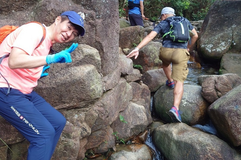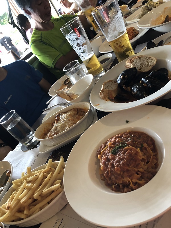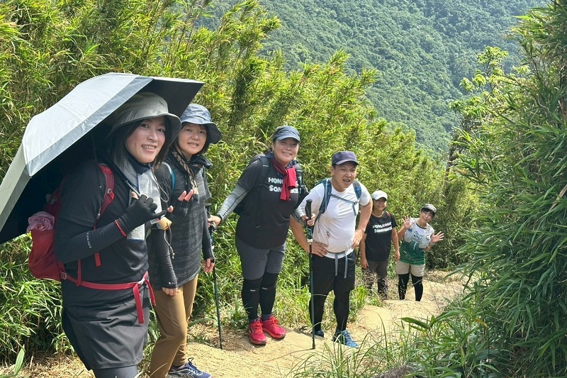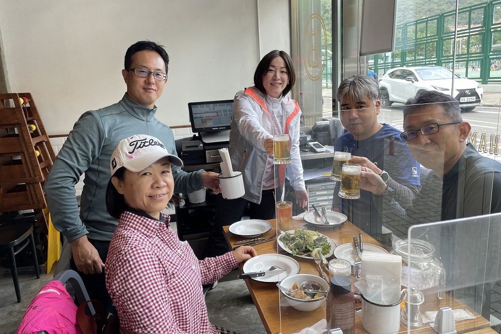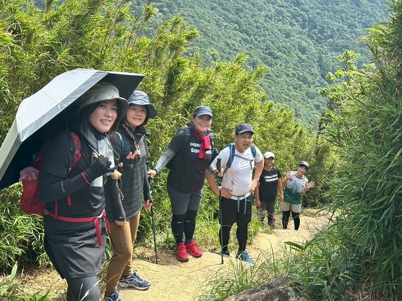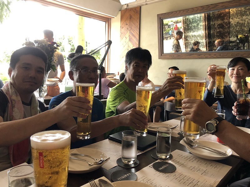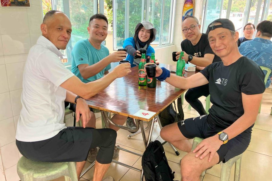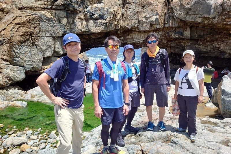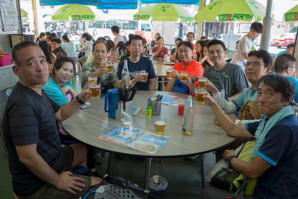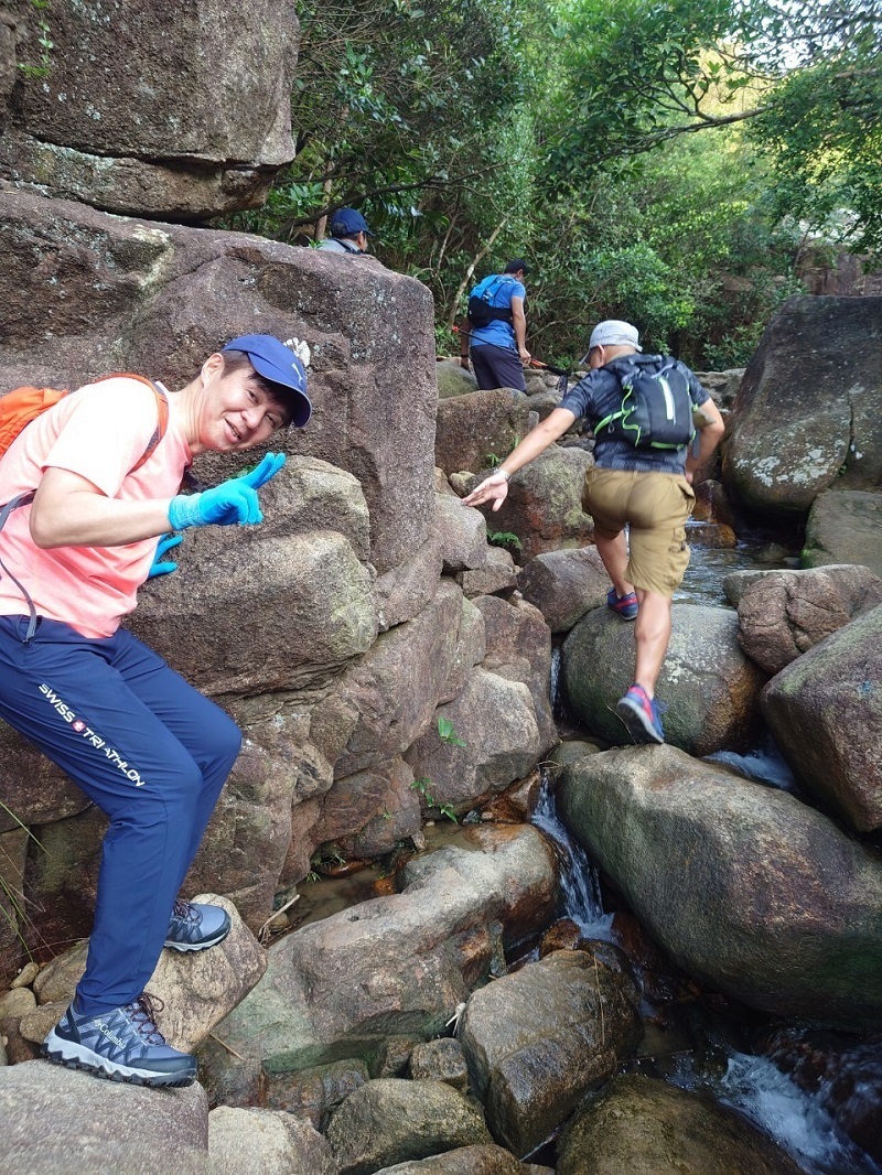 晴れで眺めもよく絶好のハイキング日和で、ドラゴンズバックは大渋滞でした。尾根戦を降り終えた地点で2グループは合流し、打ち上げの石澳に向かいました。