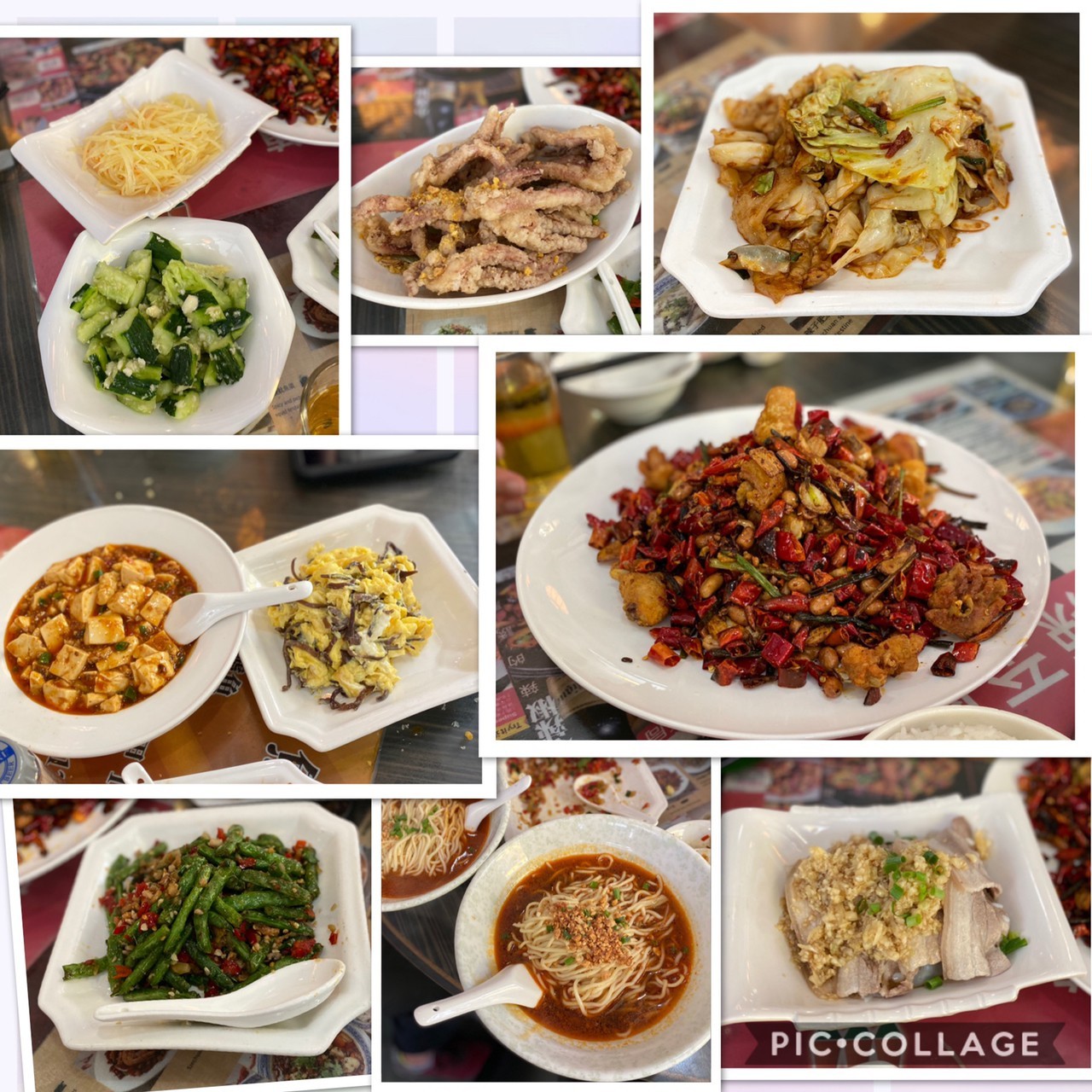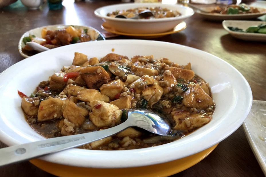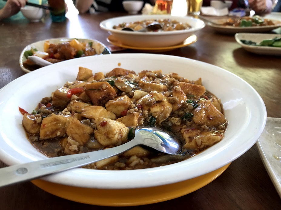 青島12本とソフトドリンク、焼き餃子、酢豚、イカフライなどの定番メニューと回鍋肉炒麺や炒年糕、鴨肉炒飯などの炭水化物、酸菜魚や紅油抄手などスパイシーなメニューを全て平らげ合計$1,225でマイタン。
