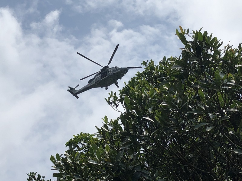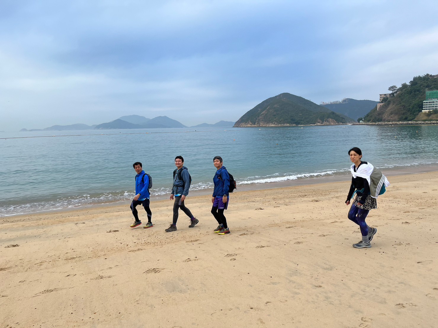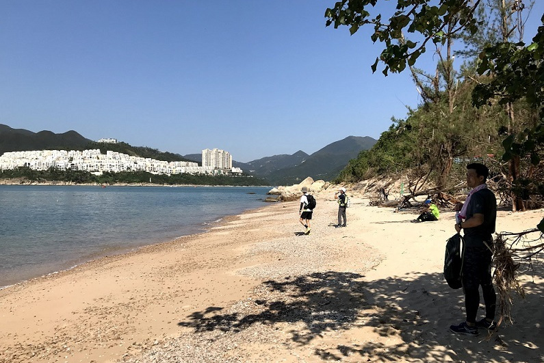 頭上にもヘリが飛んできてものものしい雰囲気。この時期の山は気をつけなければ!救助隊の後を追って無事淺水灣に到着(歩行距離8.37km)。