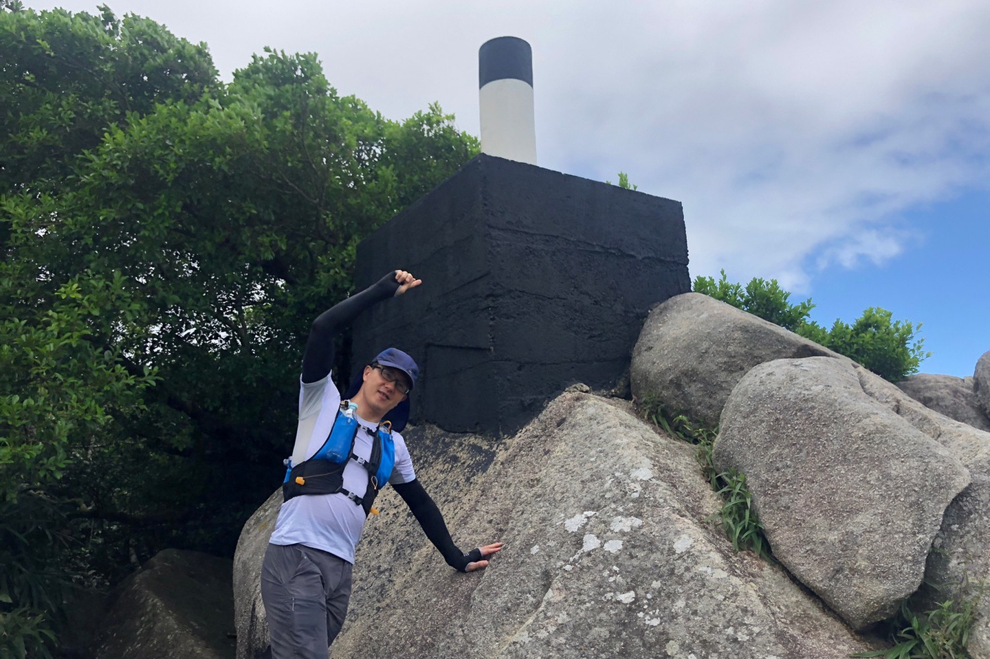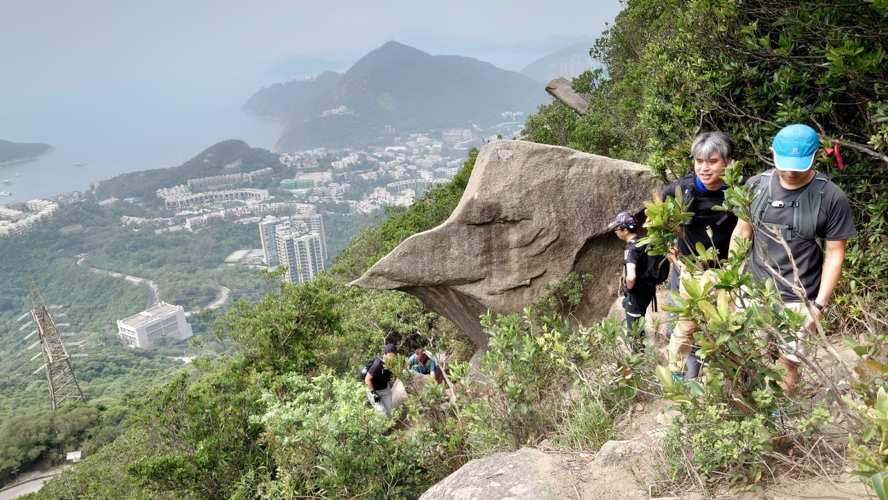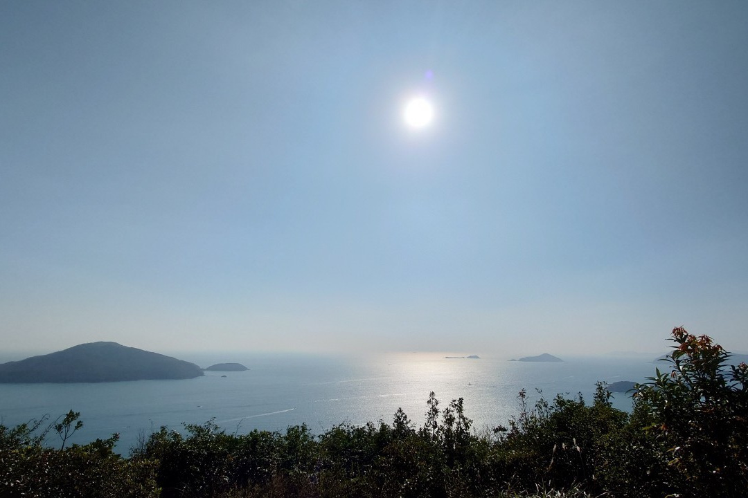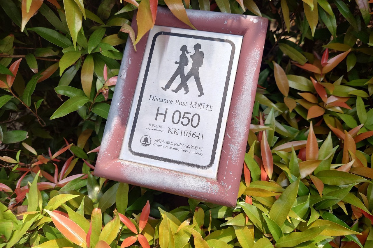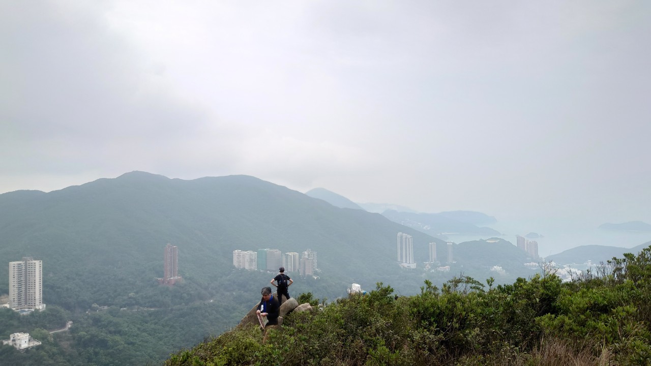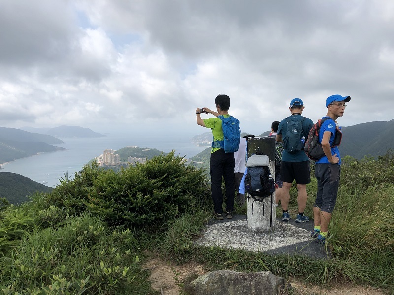 公園から逆走してきた森田さんと合流(10:35)。すると徐々に晴れ間が見えてきて、下りの道で絶景が拝めるのではと期待が膨らみます。ショートカットしたのであっという間に西高山登り口の公園を過ぎ、龍虎山観景台に着いたときはすっかり晴れてラマ島や香港島南部の景色がはっきりと見えました(11:00)。ここからしばらく下り基調が続きます。ディスタンスポストの数字を追いながら、12:10頃Sec.1が終了。