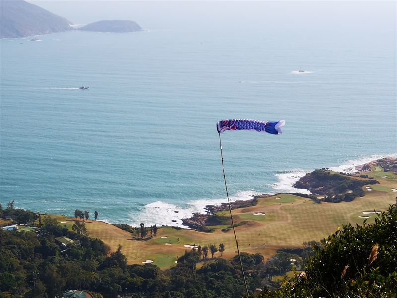 早速トレイル#8を進む。本日は登山者も少なく、順調に進む。涼しく、快晴で絶景も眺められ、絶好の山歩き日よりとなった。途中でだれが(日本人?)設置したのか、ミニこいのぼりに遭遇。海を背景にいい写真が取れました。
