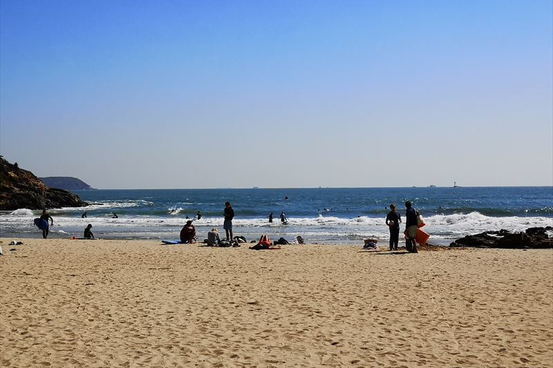 2時間ほどで石浪湾に到着。浜辺には多くのサーファーが。