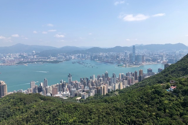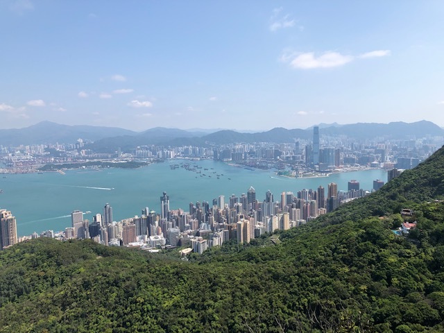久しぶりに天気に恵まれ、コロナを挟み約2か月ぶりの山海径。金鐘駅には5名が集合。ピーク行き15番のバスで9:07に出発したものの、意外にも満席で座れず。湾仔峡でハイカーが大量に下車し、少し座れて外を眺めつつ9:32頃にPeakに到着。日差しが強くなりそうだったが、若干の雲と湿度も高くなく中々のコンディション。