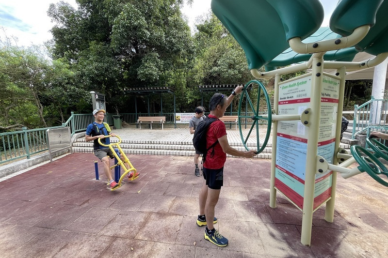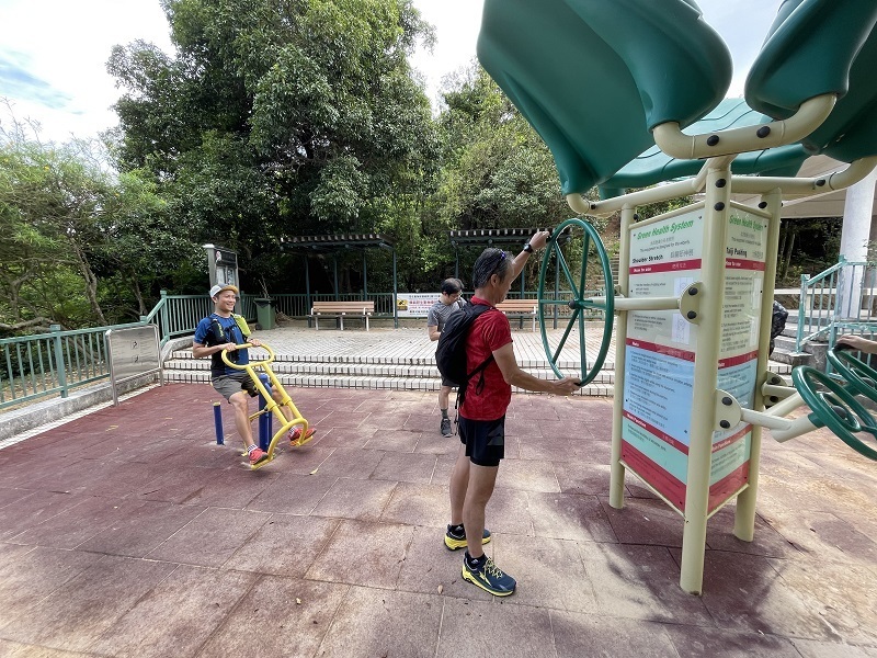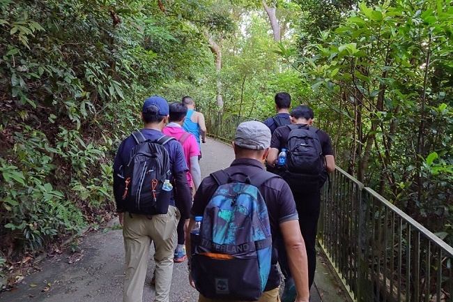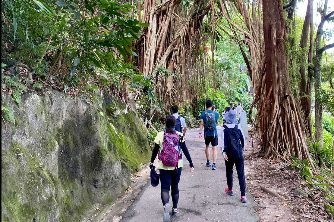 元のコースに戻り、急な坂を上る。かなり勾配がきつい。30分ほどで香港仔水塘道の入口へ。ここからは家族連れも多いのどかな平坦なコース。