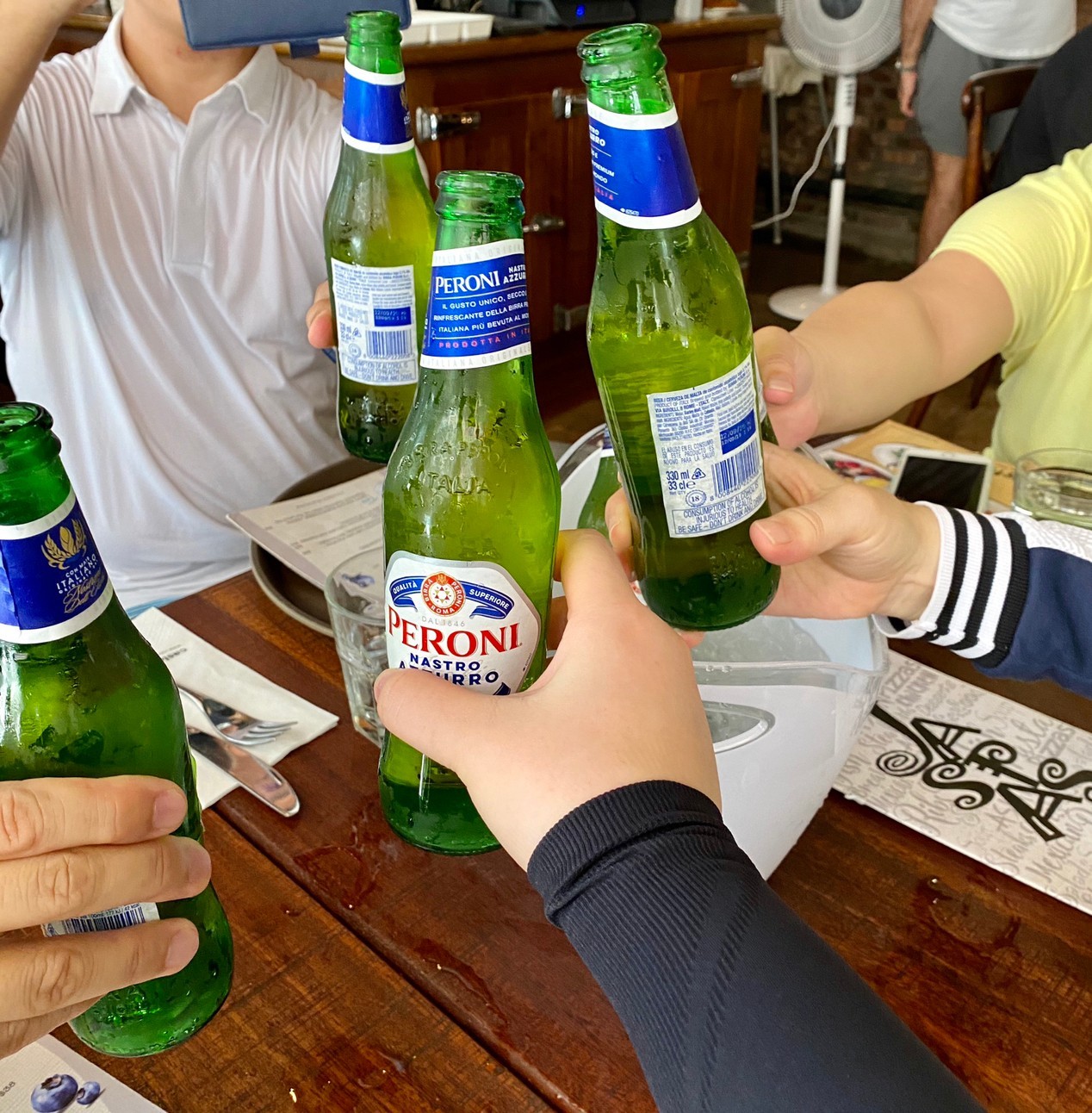 淺水灣のモール内のイタリア料理店Fratelliにて。総額2,304HKDの約半分がビール代。ちょっと高めなのは場所柄仕方なし。