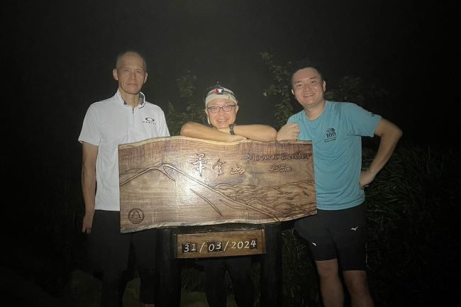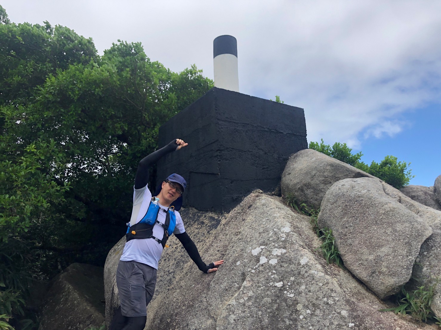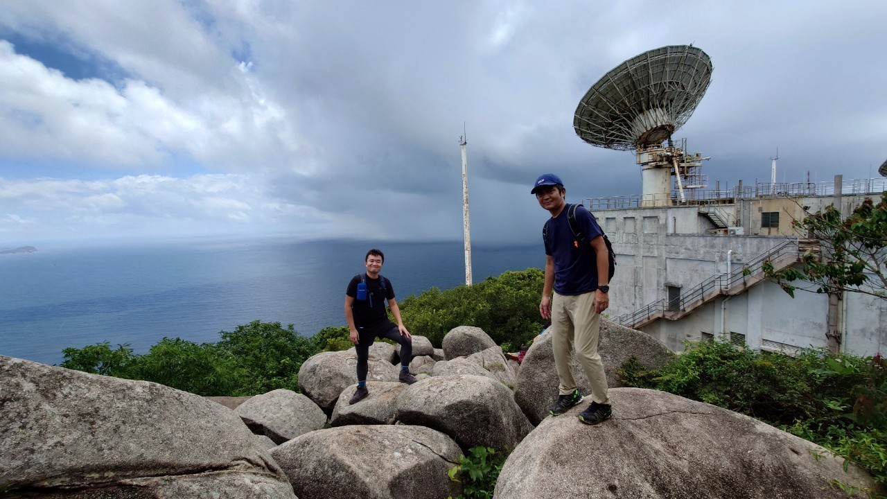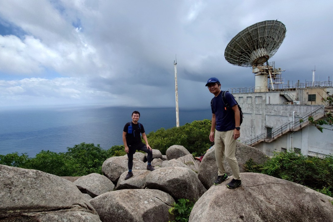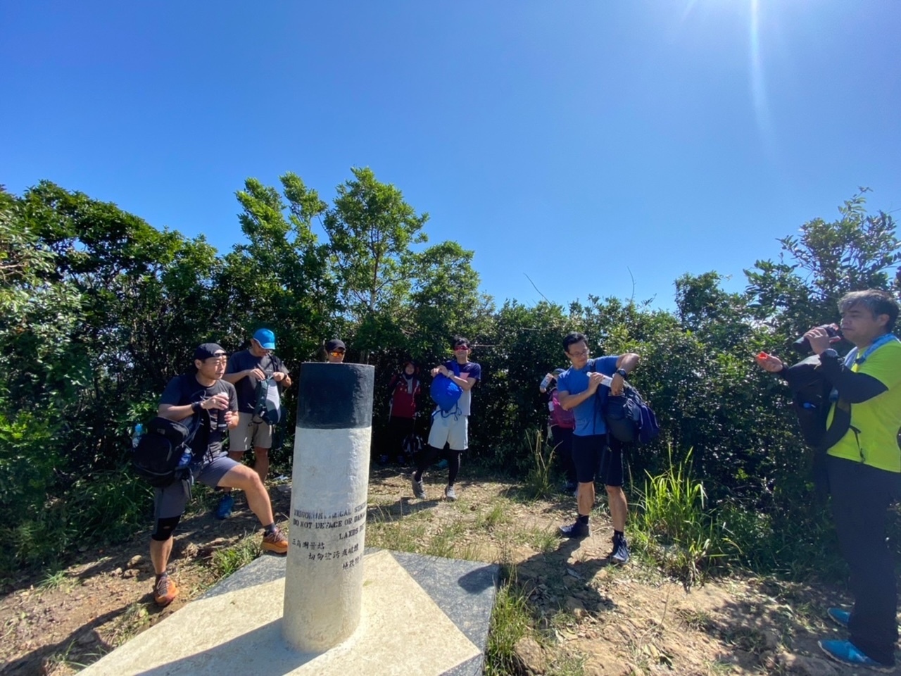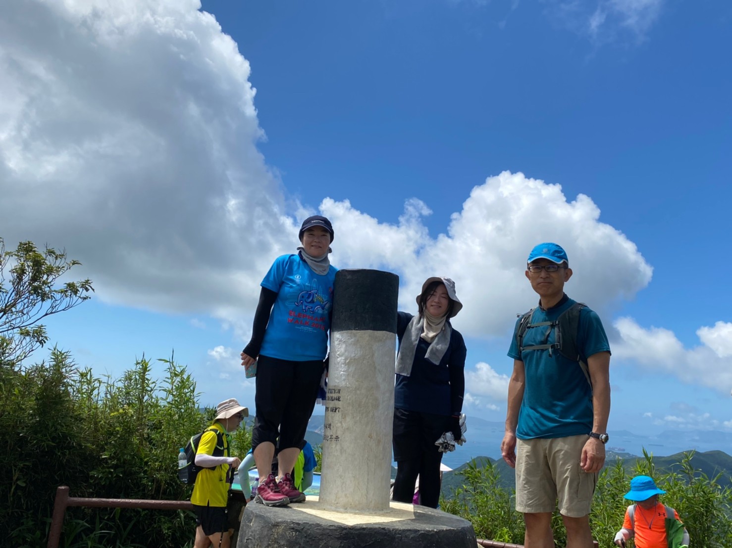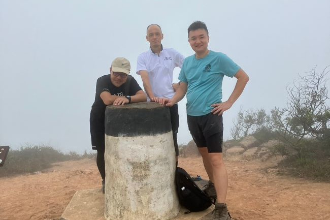 東屋の先にある階段を一気に100mほど登ると、三角点のある畢拿山観景台に到達します。まずは畢拿山の三角点で記念撮影。続く小馬山のミニ三角点を通過し、稜線の絶景を楽しみながら下ります。天候に恵まれ時折風も吹いたため、気持ち良く歩く事ができました。