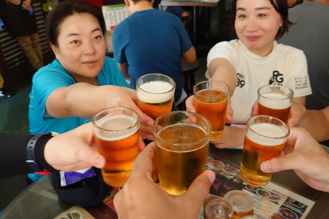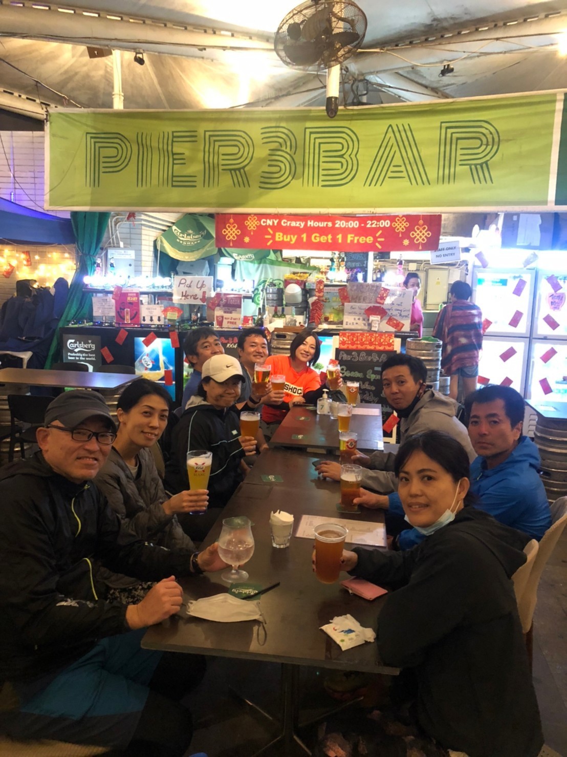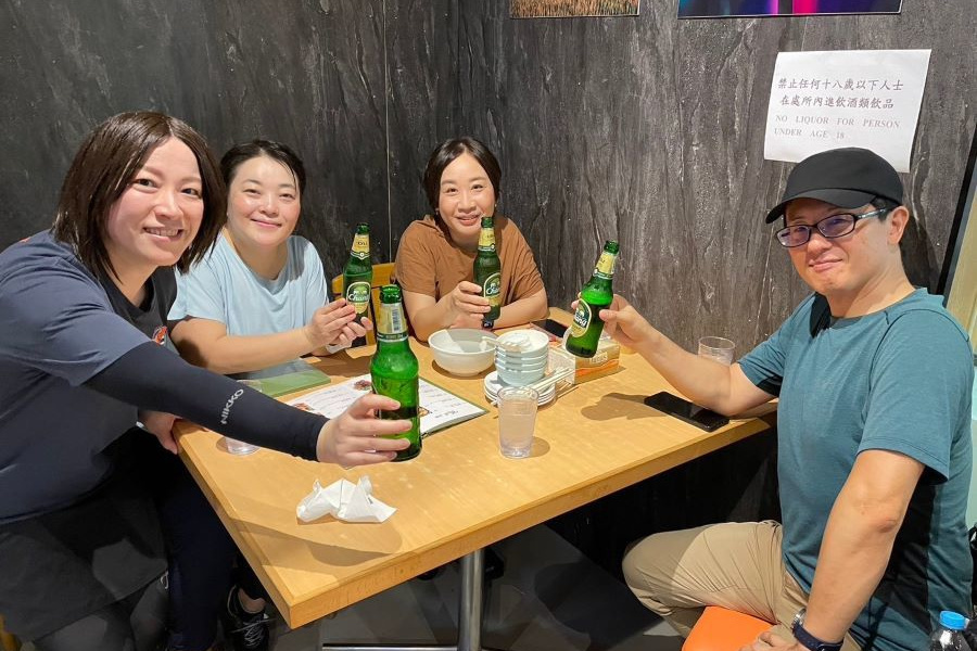 打ち上げができました。ビールを大量に飲んだもののHKD2,855でマイタン。