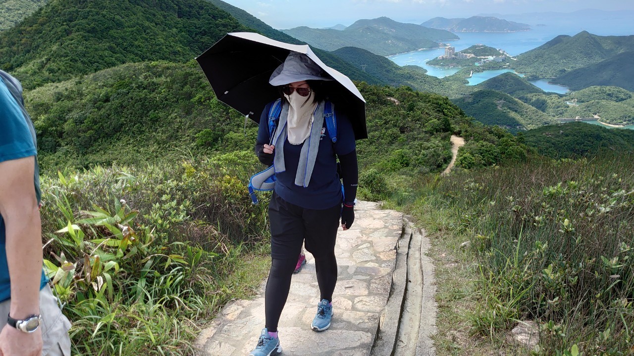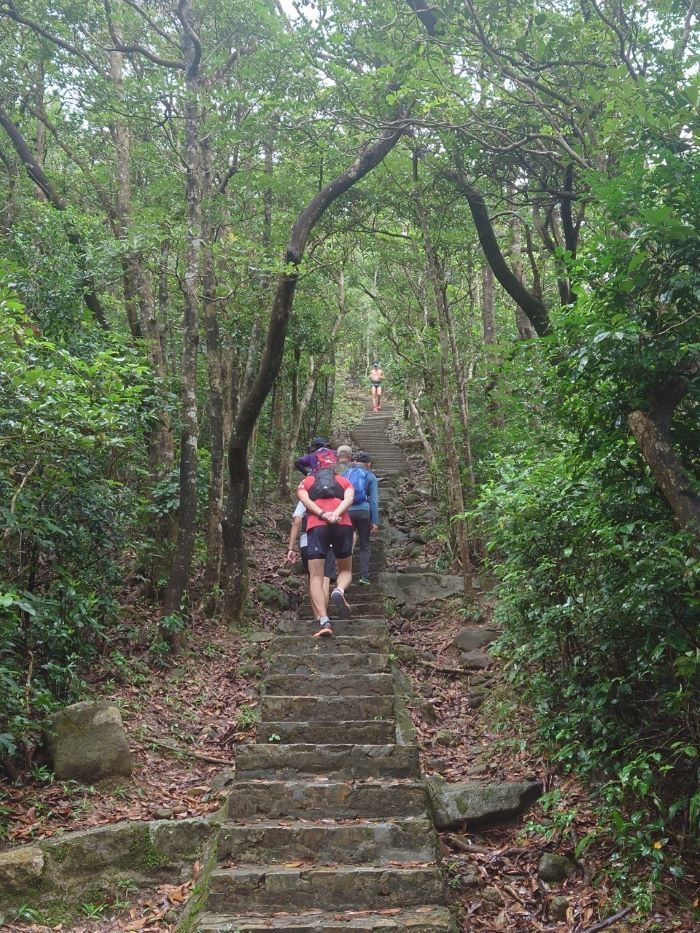 ・赤柱方面の景色を楽しんだ後、大潭水塘へ下る。なかなか険しい道だが、森の中でそれほど暑さを感じなかったのはラッキー。