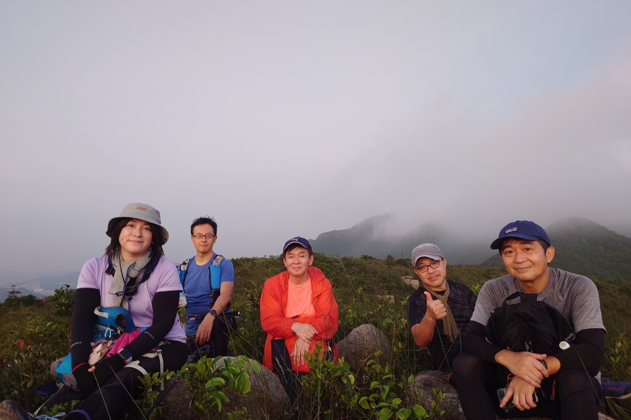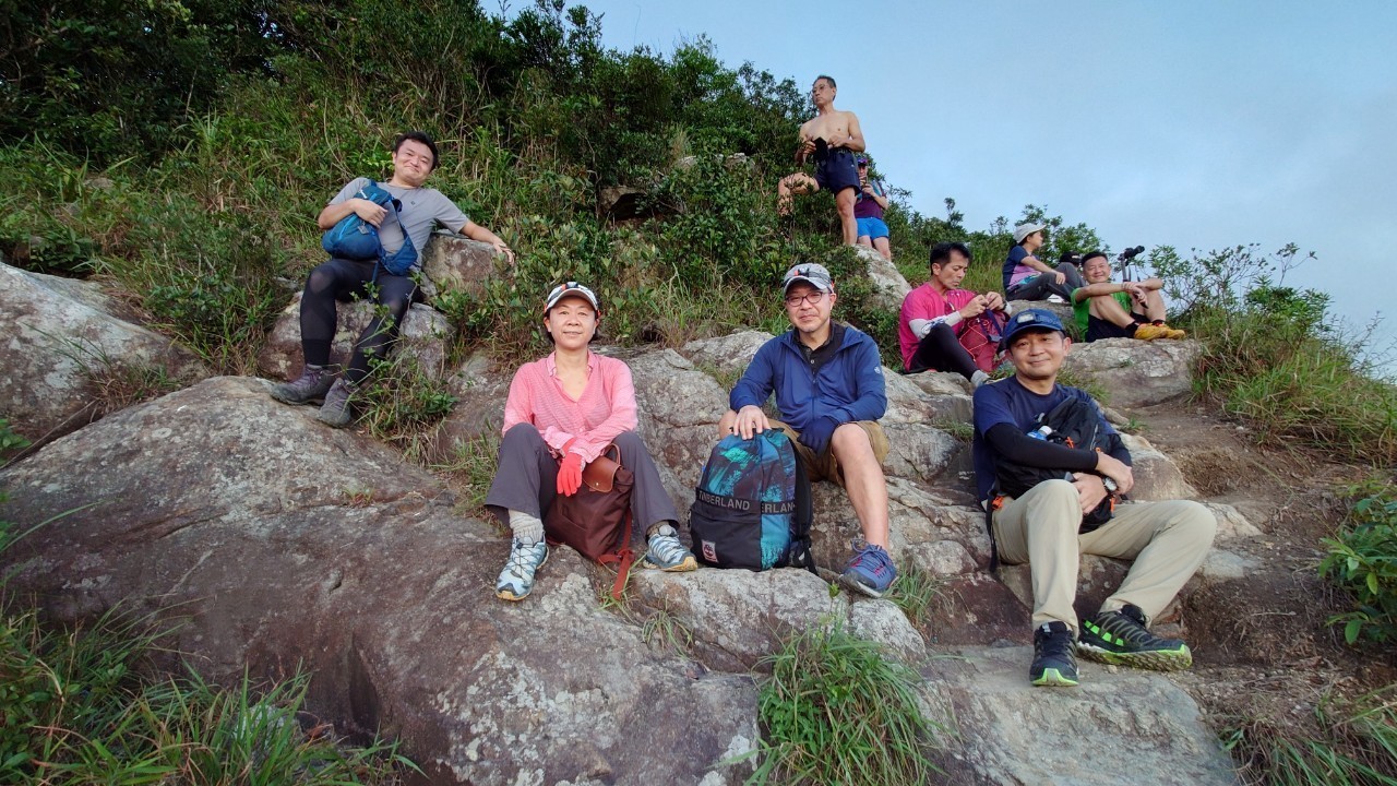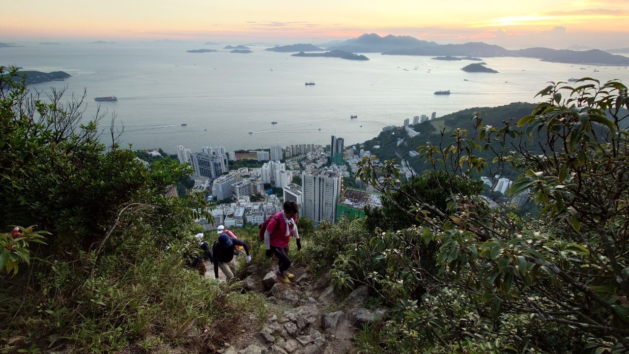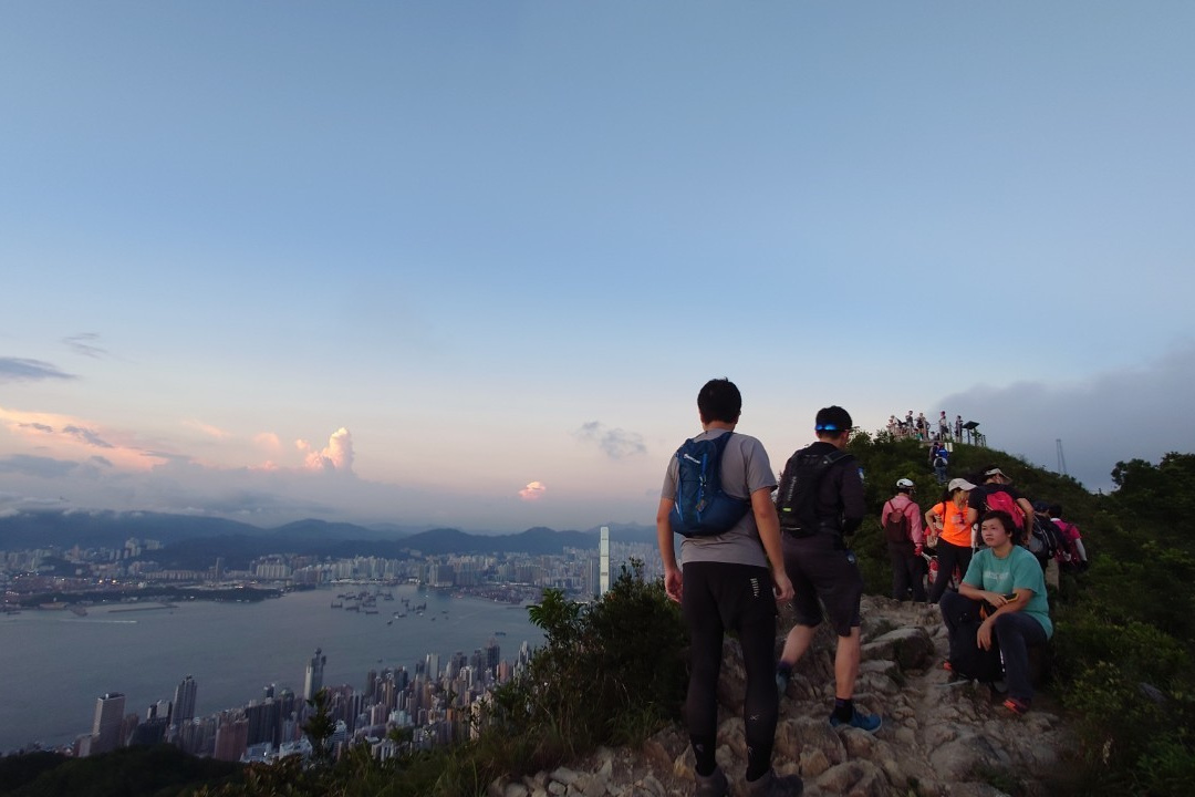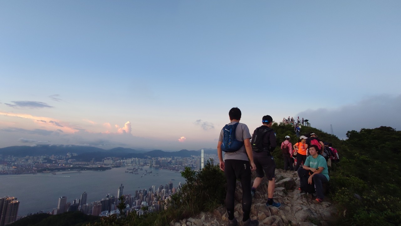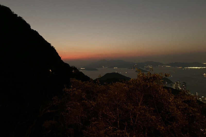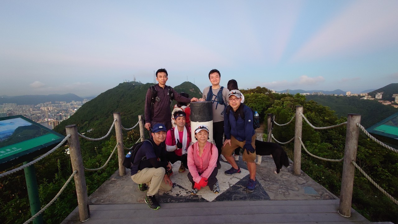 この日の日没予定は6:50ということでゆっくりと上り、香港トレイルとの合流点の公園で一時休憩。