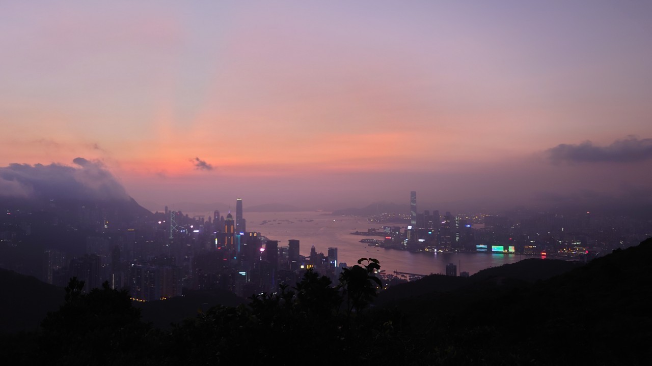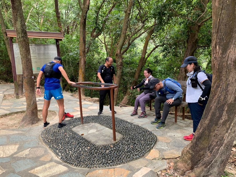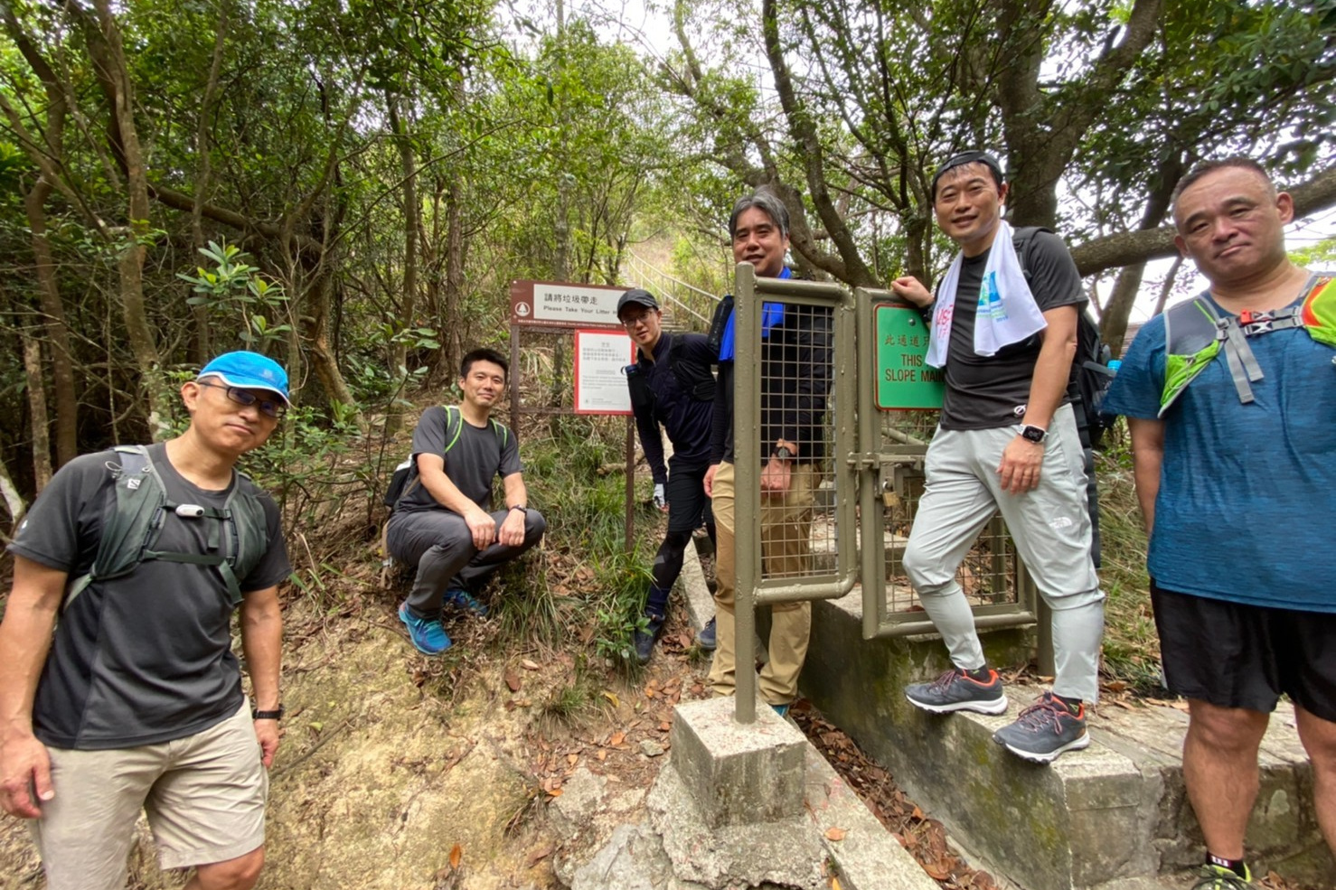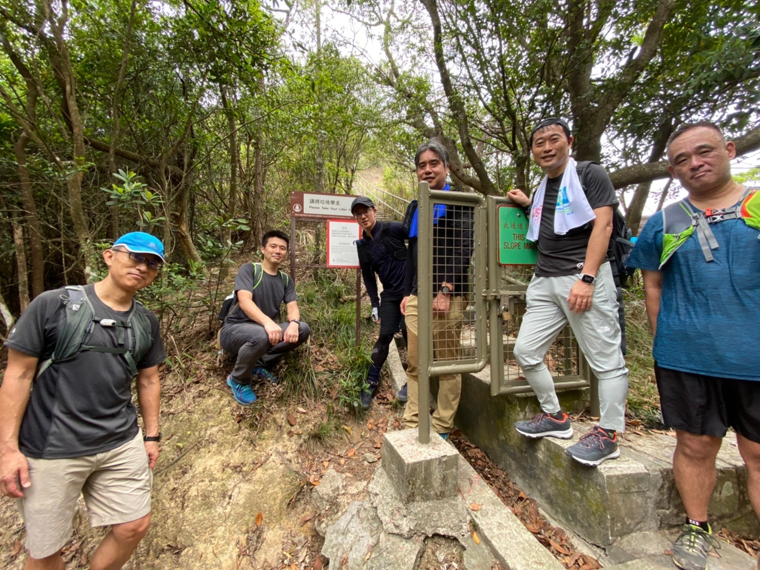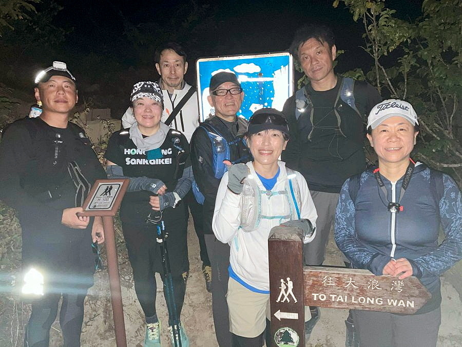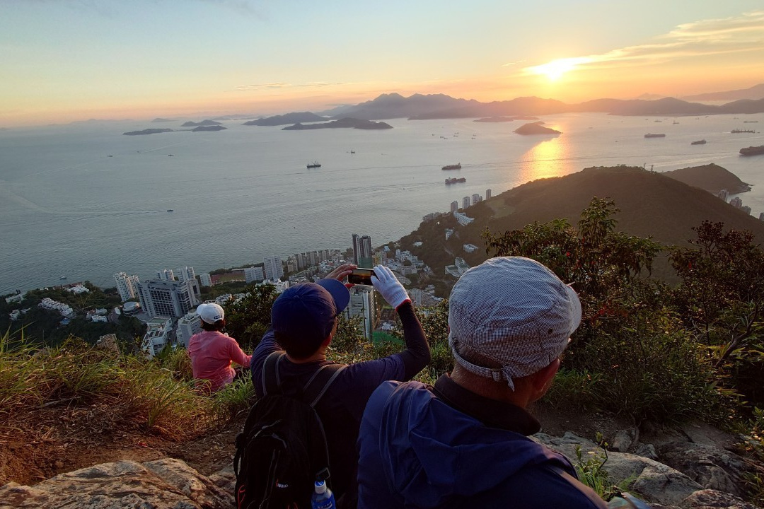 この日の日没予定は6:50ということでゆっくりと上り、香港トレイルとの合流点の公園で一時休憩。