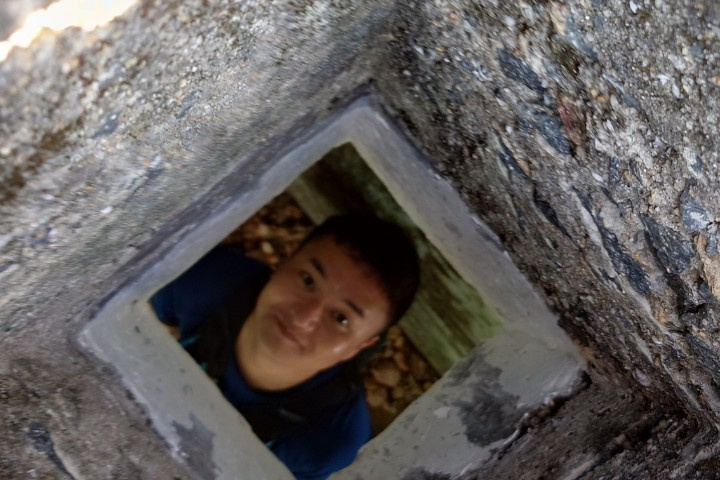 無事に藪のザレ場を抜けて舗装路へ出た後、香港仔上水塘へ。写真を見ていただくとわかりますが、意外と水塘の柵が低く若干怖いです。(11:50)