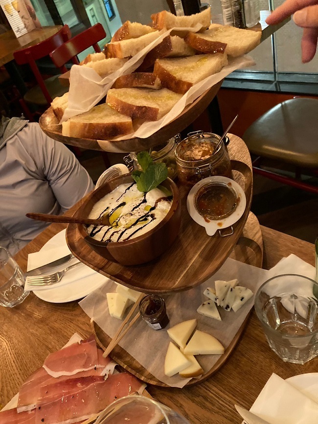 前菜はコロッケ、牛肉のタルタル、サーモンのタルタル。メインはローストチキン、真鯛のグリル、ラム肉ボロネーゼ、フォアグラ、サーモンのガレットとポイントでもらったテンダーロインを皆でシェア。追加でエスカルゴも注文。飲物はビール小瓶5本、スパークリングワイン9杯、赤ワイン7杯、白ワイン4杯の合計25杯。お酒の種類は選べないものの、なみなみ注いでもらい全て1杯HKD 35という昨今の香港にしてはうれしいお値段。これだけ食べて飲んでマイタンは一人HKD 360。最後は誕生日月サービスのデザートタワーで締め、豪華な、ちょっと遅れたクリスマス気分を味わいました。