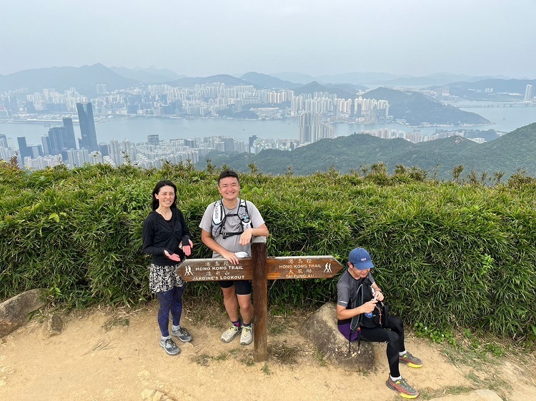 HK Trail Sec1のスタート地点からLugard Road沿いに進む。やはりピークからの眺望は良く、木陰も多いので風が吹くと気持ちいい!うっかり眺望台での撮影を逃すも、龍虎山Picnic Area Site.2から綺麗な海と島を背景に記念撮影。H007から階段を降り、突き当りのT字路を右のHatton Roadへ。ここでHK Trailとはお別れ。