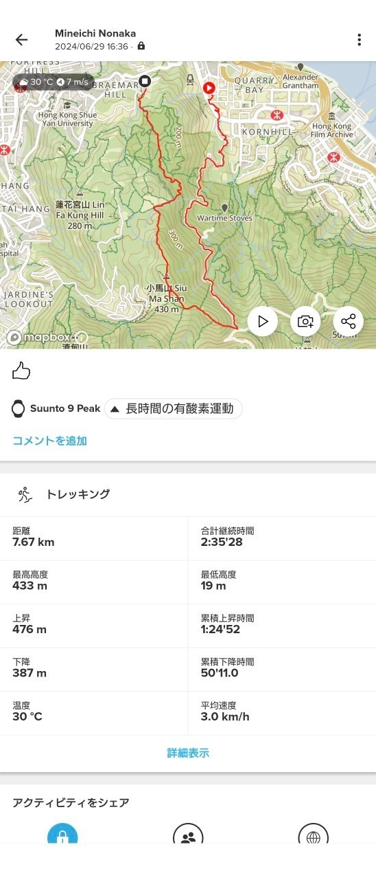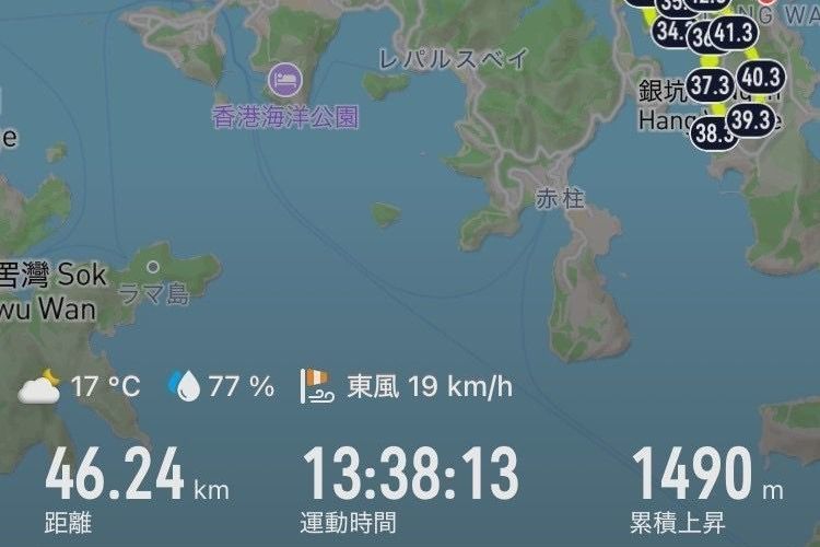 水・食料:MTR筲箕灣站で調達(コース途中に補給場所なし)