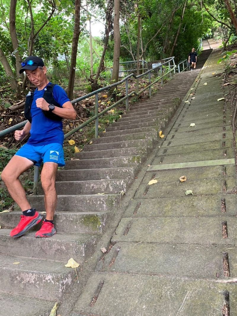 エスカレーターの終点から西に向かい(右折)、途中上り階段経由し、少しアップをしたうえでMorning Trail入口まで向かう。