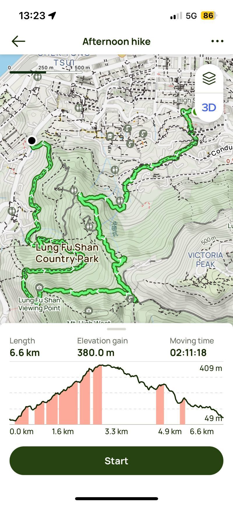 中環ドンキ前~龍虎山Morning Trail~西高山〜Lugard Road展望台~Peak Tower 7km 3時間分