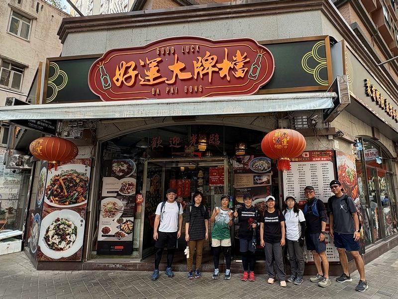 Pok Fu Lam Roadを渡り、ビクトリア湾を眺めながらここでも階段を下る。下りが殆どのコースのため、思ったより足に負担があったかも。昼食は本命のメヒコー料理をはじめ、行くところ満席や開店前で入れず、昼食難民のおそれが頭をよぎる。マズイ・・・。夕方から別の予定がある小野さんの「茶餐廳でもよいのでは」との一言も女性陣の雰囲気からスルー。なんとか涼しい店内に空席があるウエスタン料理屋を発見。父の日で予約が多かったのではとの分析で、新米幹事には学ぶこと多々。(11:47頃到着)